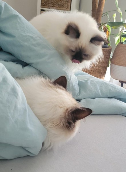 Sie folgen der neuen Katzenmama schon auf Schritt und Tritt und fordern ihre Streichel- und Kämmeinheiten ein.